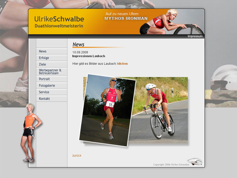 Internetauftritt der Duathlon-Weltmeisterin und mehrfachen deutschen Meisterin.